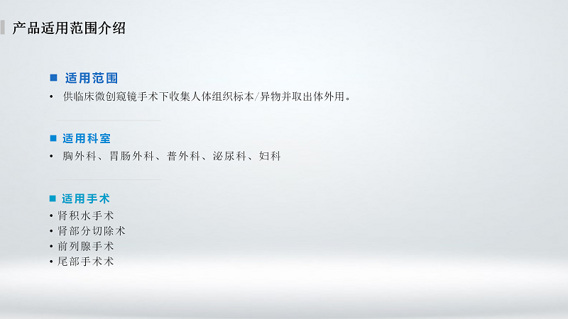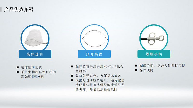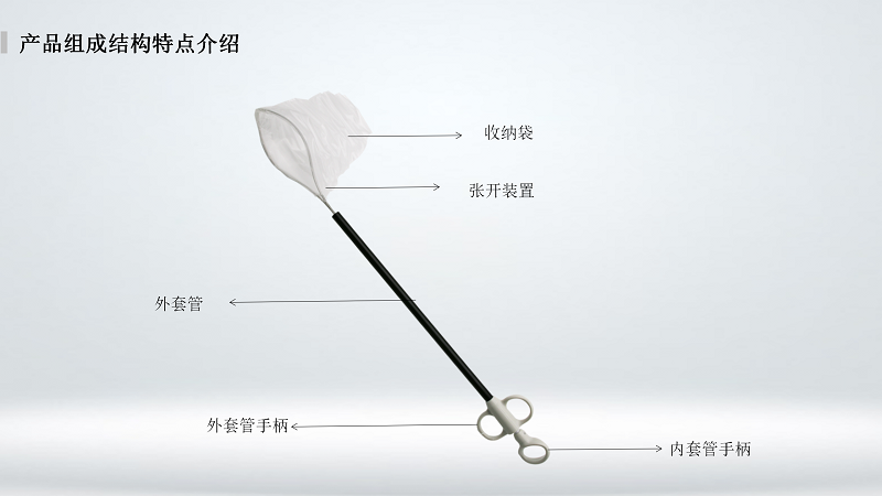 腹腔镜手术具有疗效好、创伤小、恢复快等优点,近年来在临床外科被广泛运用。腹腔镜手术已广泛应用于普腹外科、泌尿外科、妇产科等多种腹腔手术,对于手术切下的肿瘤或病理切片等标本,需要及时取出腹腔,但由于微创切口较小,需要将标本装入专用医用小布袋中才能顺利取出。